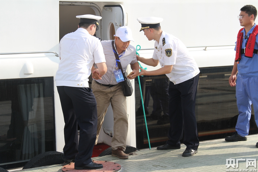 引導(dǎo)珠江片區(qū)“中國航海日”考察嘉賓下船(央廣網(wǎng)發(fā) 肇慶海事局供圖)