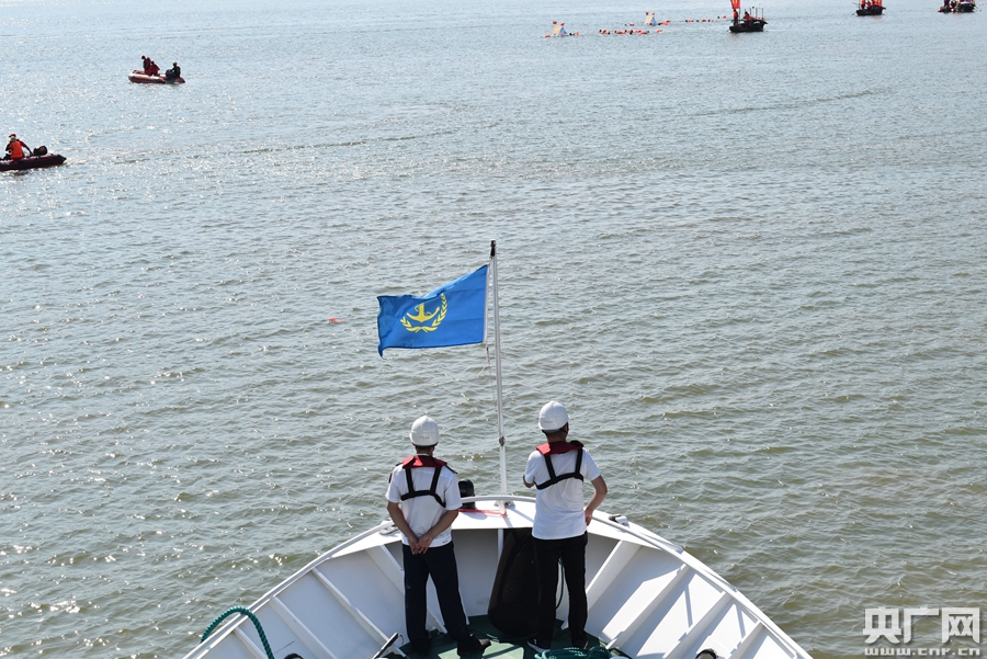 執(zhí)法人員現(xiàn)場維護(hù)“橫渡西江”活動(dòng)秩序(央廣網(wǎng)發(fā) 肇慶海事局供圖)