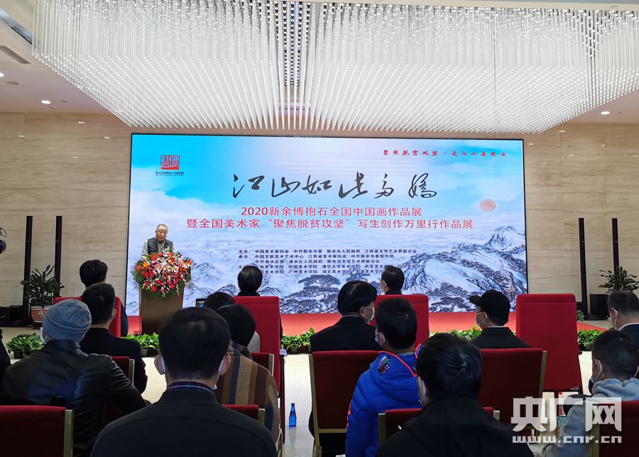 央廣網(wǎng)北京10月24日消息(記者魏文欣)10月24日,由中國(guó)美術(shù)家協(xié)會(huì)、中共江西新余市委、新余市人民政府、江西省文學(xué)藝術(shù)界聯(lián)合會(huì)聯(lián)合舉辦的“聚焦脫貧攻堅(jiān)、走向小康生活——2020‘江山如此多嬌·新余傅抱石’全國(guó)中國(guó)畫作品展”暨全國(guó)美術(shù)家“聚焦脫貧攻堅(jiān)”寫生創(chuàng)作萬(wàn)里行作品展在中國(guó)政協(xié)文史館開幕。中國(guó)美術(shù)家協(xié)會(huì)與設(shè)區(qū)市聯(lián)合開展“聚焦脫貧攻堅(jiān),走向小康社會(huì)”題材的寫生創(chuàng)作和展覽活動(dòng),在全國(guó)首開先河。