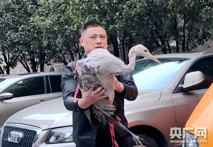 工作人員救助二級保護動物灰鶴(央廣網發 通訊員供圖)
