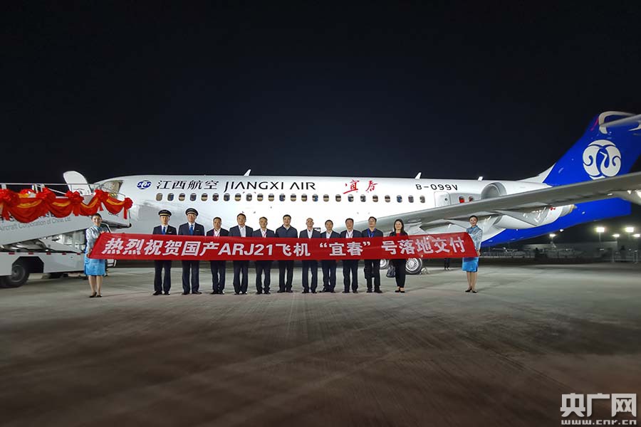 央廣網南昌10月31日消息(記者謝元森)10月30日晚,中國商用飛機有限責任公司首次在中國商飛江西生產試飛中心交付ARJ21飛機,這也是江西航空接收的第3架ARJ21飛機。