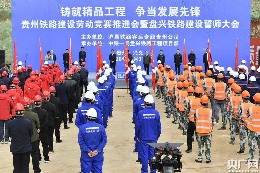 在主題為“鑄就精品工程 爭當發展先鋒”的勞動競賽誓師大會現場,貴州省總工會副主席楊杰說,貴州省是西部大開發的重要戰略支點,是新時代構建西部大開發新格局、推動西部地區高質量發展的重要力量。2020年是貴州省全面建成小康社會和“十三五”規劃的收官之年,也是貴州省鐵路建設極其重要的一年。在盤興鐵路建設現場舉行的貴州省鐵路建設勞動競賽推進會,將全力推動貴州省中長期鐵路網規劃項目落實落地。