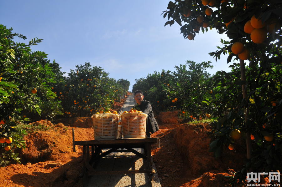 果農自建了軌道臍橙運輸車運送臍橙,減輕了勞動強度(央廣網發 通訊員供圖)