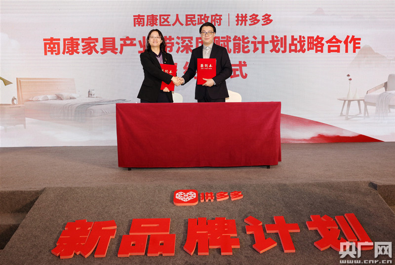 央廣網贛州11月16日消息(記者謝元森 通訊員沈漢華)11月16日,江西贛州市南康區與知名電商平臺拼多多簽署南康家具產業帶深度賦能計劃戰略合作框架協議。在國內國際雙循環的背景下,南康家具產品聯手電商平臺,持續做強產業品牌。目前,“在新品牌計劃”的框架下,拼多多平臺上已涌現出聯圓世家、優居未來、匯明創家等一批產業帶家具品牌。