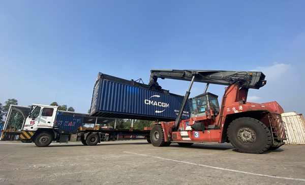 11月20日,佛山海關駐三水辦事處關員在三水港對裝有75.2噸禁止進口固體廢物的3個集裝箱進行核對箱體和加施海關關封,全程監管該批固體廢物裝船離境。