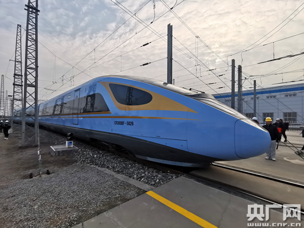 新型“復興號”動車組抵達西安動車段(央廣網發 通訊員周博倫 攝)