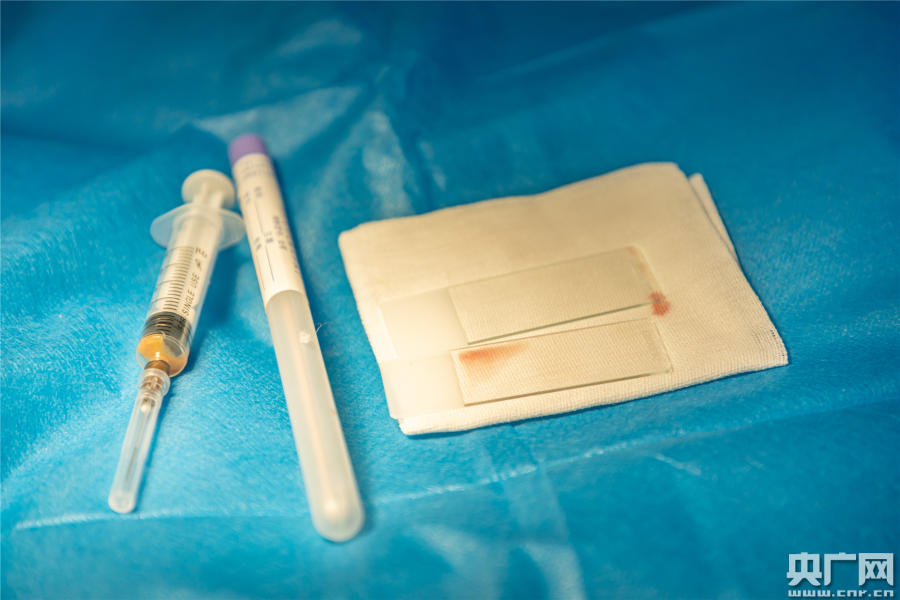 獸醫對黃金蟒進行抽血,供后續檢查使用(央廣網發 通訊員供圖)