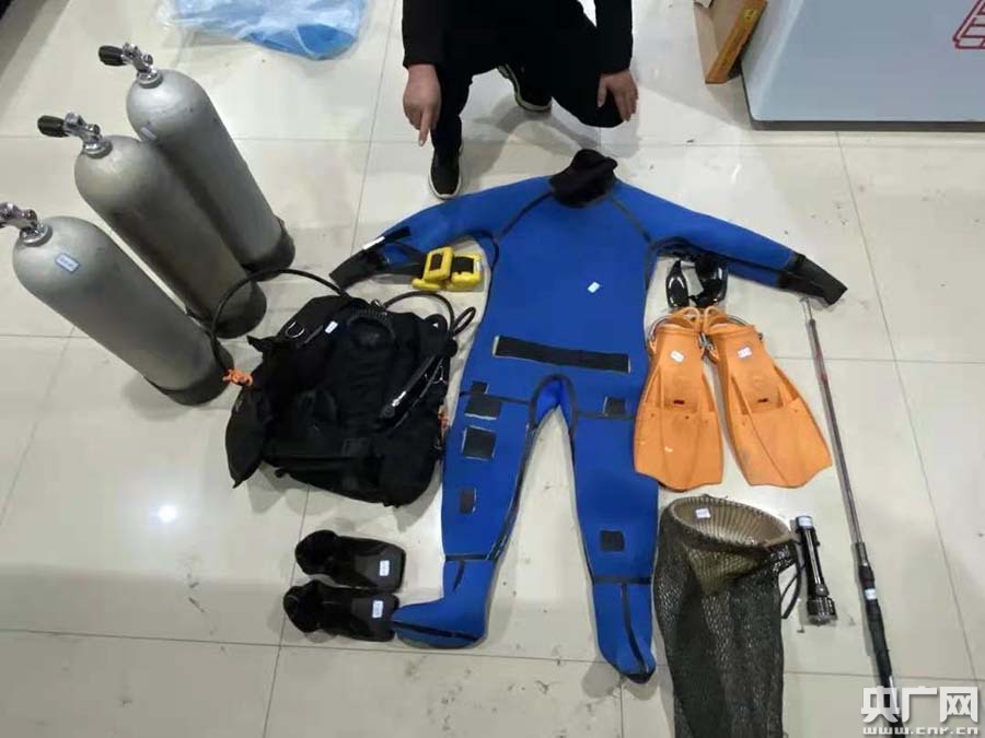現場查獲的專業潛水設備(央廣網發 重慶市公安局供圖)