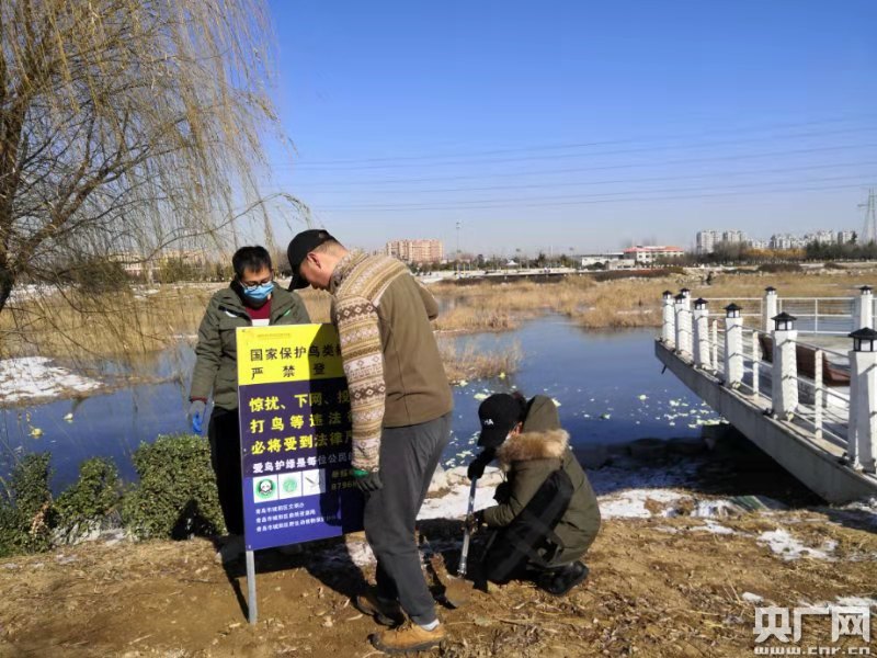 2021年新年元旦,在市民走親訪友家庭歡聚之時,近百名志愿者冒著零下7度嚴寒,沿白沙河夏莊段濕地開展巡護巡視,科普環保知識,保護濕地生物多樣,放飛前期救護的候鳥,對部分濕地冰封鳥類開展收容救護。