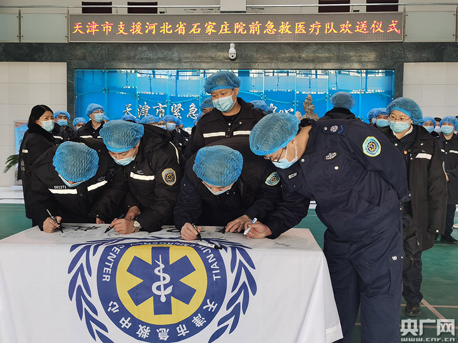 天津市支援河北石家莊院前急救醫(yī)療隊正式啟程(央廣網發(fā) 天津市衛(wèi)健委供圖)