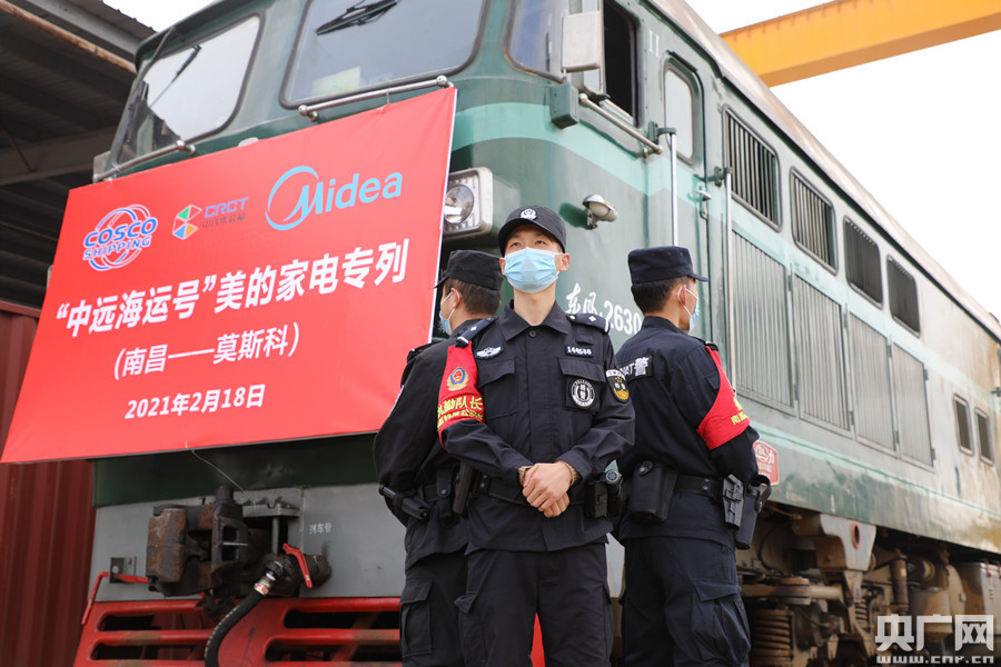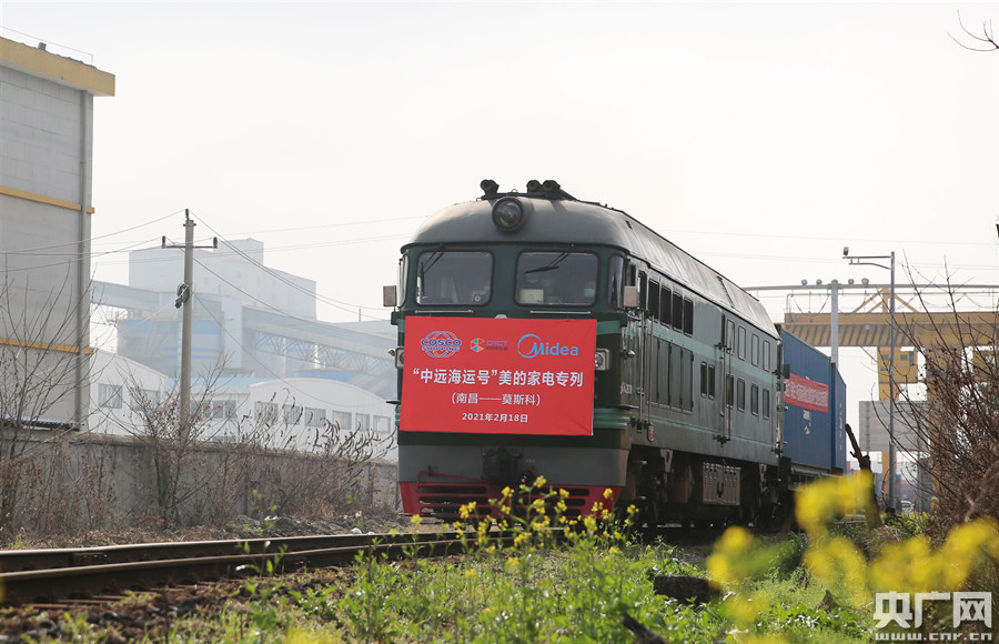 央廣網南昌2月18日消息(記者謝元森 通訊員李翔 周娜)2月18日,滿載50車洗衣機、洗碗機等電器的中歐班列專列由南昌(向塘)國際陸港橫崗站駛出,預計15天后抵達俄羅斯莫斯科。這也是江西省開行中歐班列以來,首次為家電企業開行的出口專列,班列貨價約148萬美元。
