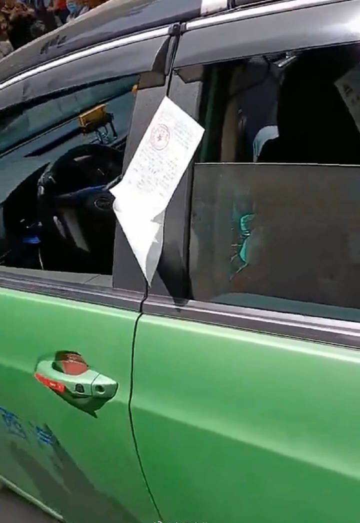 被貼罰單的涉事出租車(央廣網發 視頻截圖)