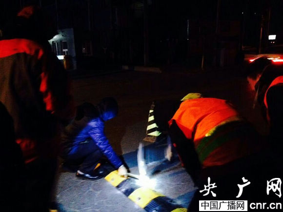 央廣網(wǎng)北京2月9日消息(記者劉云龍)近日,有民眾向記者反映,北京市朝陽(yáng)區(qū)雙橋東路多處路段存在嚴(yán)重安全隱患,交通事故頻發(fā),自進(jìn)入2015年以來(lái),就發(fā)生了3起行人被撞死的嚴(yán)重事故。附近居民稱,他們已經(jīng)持續(xù)六年向政府有關(guān)部門反映情況,要求在關(guān)鍵路口加裝紅綠燈和斑馬線,但問(wèn)題一直沒(méi)有得到解決,面對(duì)頻發(fā)的車禍,他們決定自籌資金在雙橋東路主要路口安裝減速帶。