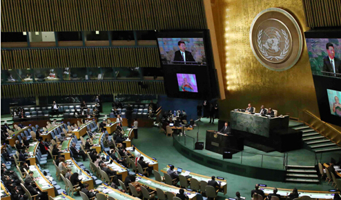 9月26日,國家主席習近平在紐約聯(lián)合國總部出席聯(lián)合國發(fā)展峰會并發(fā)表題為《謀共同永續(xù)發(fā)展 做合作共贏伙伴》的重要講話。新華社記者 劉衛(wèi)兵 攝