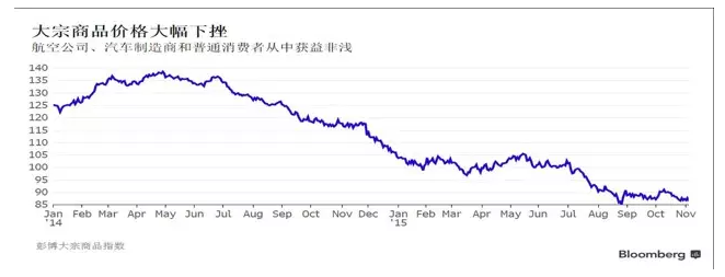 圖表:大宗商品價格暴跌,大宗商品價格下跌令航空公司、汽車制造商和消費者受益 數(shù)據(jù)來源:彭博商品指數(shù)