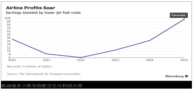 圖表:航空公司利潤飆升,航空燃料成本下降使利潤提振 凈利潤(單位:10億美元) 數(shù)據(jù)來源:國際航空運輸協(xié)會