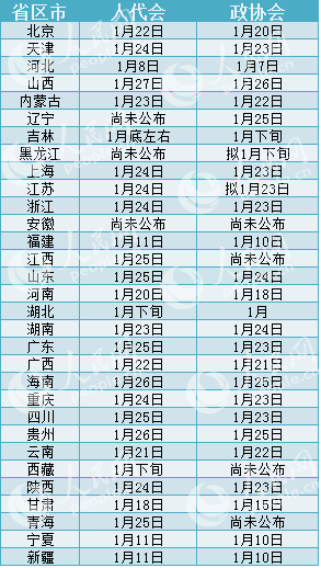 (資料來源于各省日報及人大、政協網站,內容截至1月4日,實際時間以當地會議召開時間為準。制表 馬麗婭)