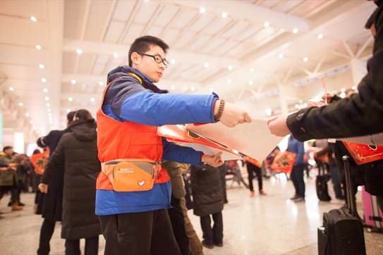(飛鶴志愿者向上海虹橋火車站旅客發(fā)放新春“!弊)