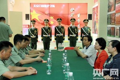 央廣網北京7月28日消息(記者 于聞)“八一”建軍節來臨之際,海南省婦聯主席劉錦、海南省賦蓮婦女兒童活動中心主任許棟松一行帶著數百萬海南婦女兒童的心聲與祝福,攜手半月談雜志社副總經理、中國公益形象大使王京忠先生,27日來到北京天安門國旗護衛隊駐地,看望和慰問國旗護衛隊官兵并與衛隊政委王建華等進行了親切友好的座談。海南省婦聯機關干部一同參加了慰問。