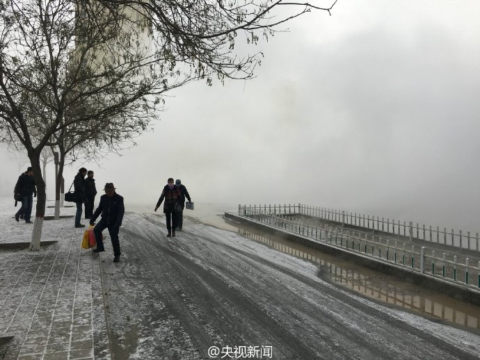 今天上午,甘肅酒泉市敦煌路交解放路一暖氣管道發生爆裂。截至12點,暖氣管道里的水已經淹沒了附近兩條街道的路面,市區5.6萬戶15萬居民供暖將受到影響。昨晚開始,酒泉市降溫降雪,氣溫較低。目前,相關部門正在緊張搶修。(央視記者 王皓)