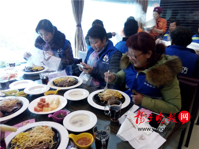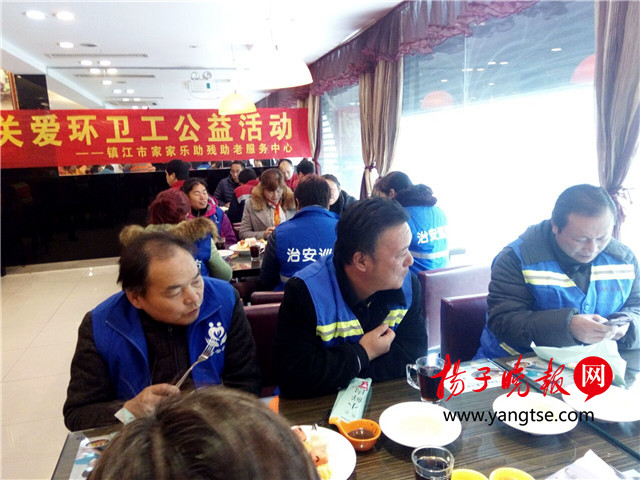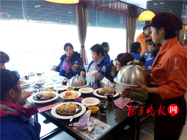揚子晚報網11月25日訊(通訊員 施澎 戴勇 記者 萬凌云) 時近年末天寒地凍,然而社會各界人士關愛環(huán)衛(wèi)工人的熱情卻一波波來襲。25日中午,在鎮(zhèn)江市區(qū)夢溪路一餐廳內,鎮(zhèn)江50名環(huán)衛(wèi)工人齊聚一堂,“嘗鮮”吃牛排。這次溫暖、關愛環(huán)衛(wèi)工公益活動,是由鎮(zhèn)江公益組織“家家樂助殘助老服務中心”和這家餐廳聯(lián)合發(fā)起的。而與以往社會給環(huán)衛(wèi)工人發(fā)“愛心福利”的方式不同,這次前來就餐的環(huán)衛(wèi)工中,大多數都由愛心人士走到作業(yè)地段上,現(xiàn)場邀請召集而來的。由此,面對天上掉下來的“牛排”,邀請人還被當成了“騙子”。