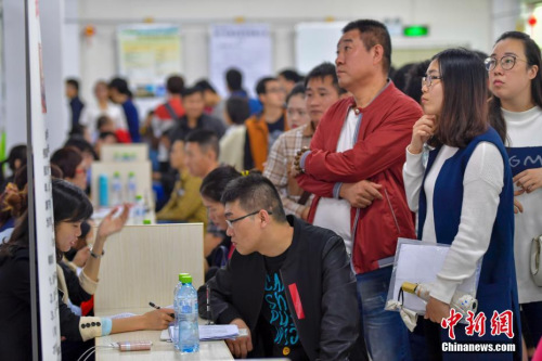 資料圖:2017年2月8日,2017年海南省新春首場特大型招聘會在海南省人力資源市場舉行,吸引了眾多求職者前來入場求職。中新社記者駱云飛 攝