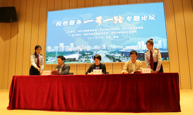 央廣網深圳4月22日消息(記者黃倩)21日下午,深圳稅收服務“一帶一路”專題論壇在中國自由貿易實驗區(廣東)前海蛇口片區舉行。深圳市國稅局、地稅局、前海管理局三方共同簽署合作備忘錄,旨在形成合力,助力深圳企業發展。