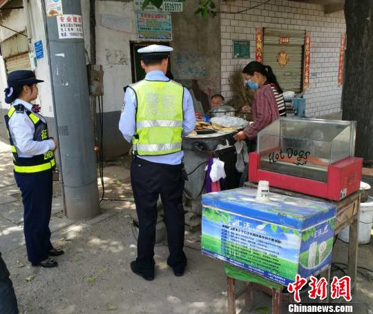 圖為民警帶著老人打聽其家人和住址!≈車恰z