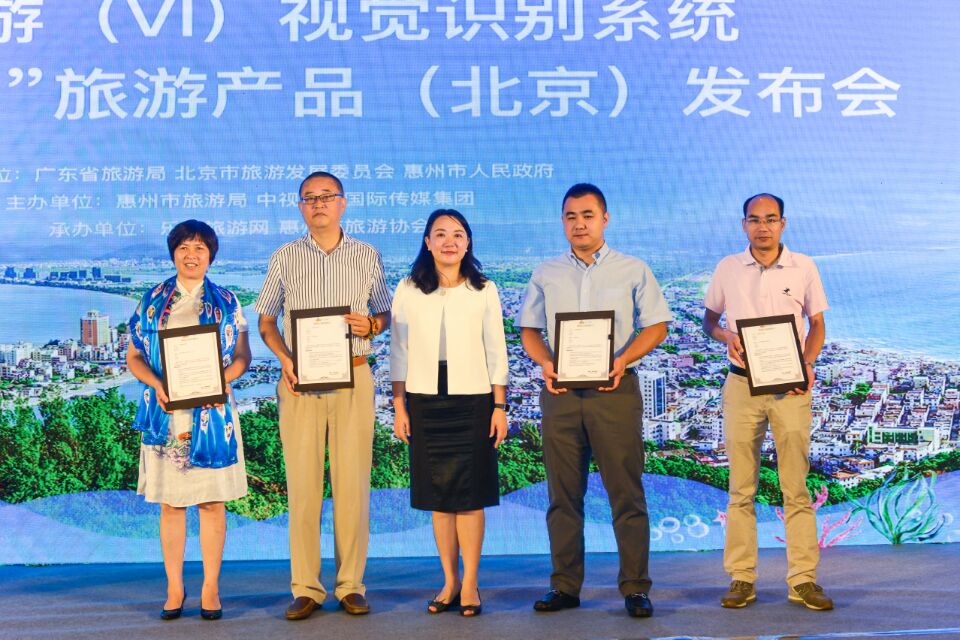 發布會上,惠州市旅游局局長張莉蘭介紹惠州旅游VI視覺識別系統,推介惠州“八大精彩”旅游線路及產品,并授予相關單位或企業使用授權書。