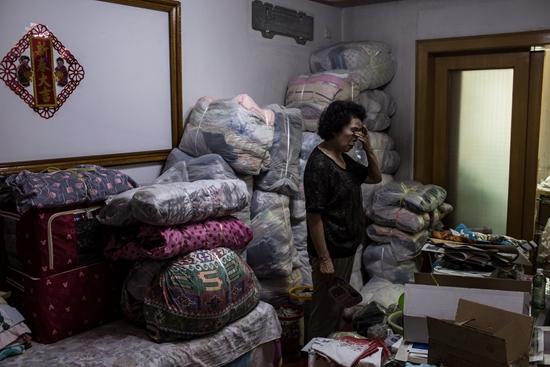 受騙老人吳老太在家中收拾行李,房子被二次過戶后,新房主要求她在三天之內搬走。趙赫廷/攝