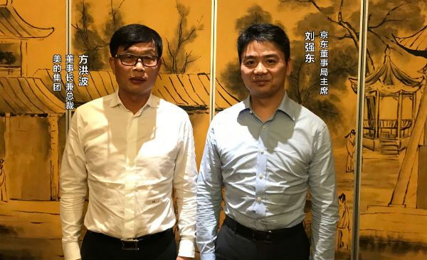 京東集團董事局主席兼首席執(zhí)行官劉強東與美的集團董事長兼總裁方洪波合影