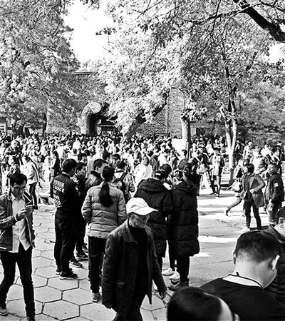 香山公園售票處排隊買票的人群