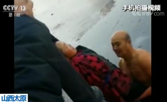 央視網消息:1月1日,在山西太原龍潭公園黑龍潭湖東岸,一名中年女子落水。在湖邊鍛煉的一位六旬老人聽到呼救后,冒著嚴寒下水救人,落水女子順利脫險。