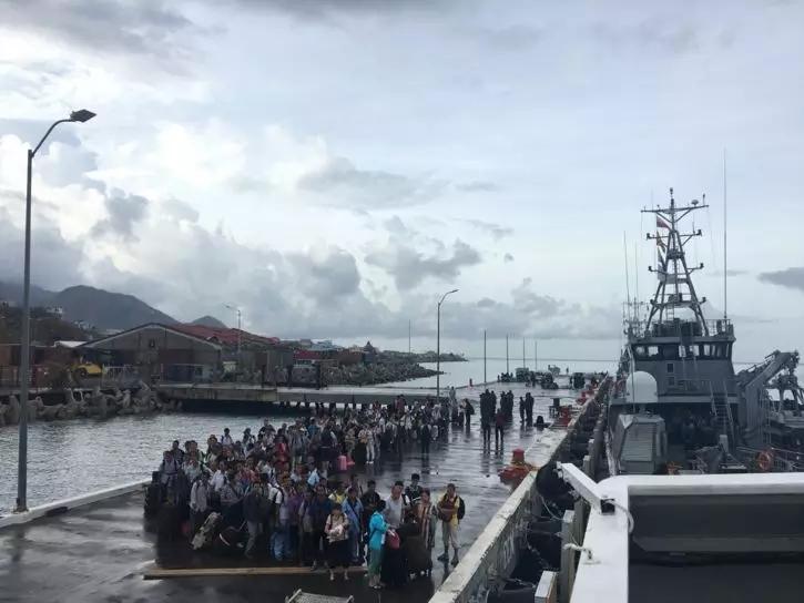 △圖/9月30日,我國人員在多米尼克羅索碼頭登船前往安巴