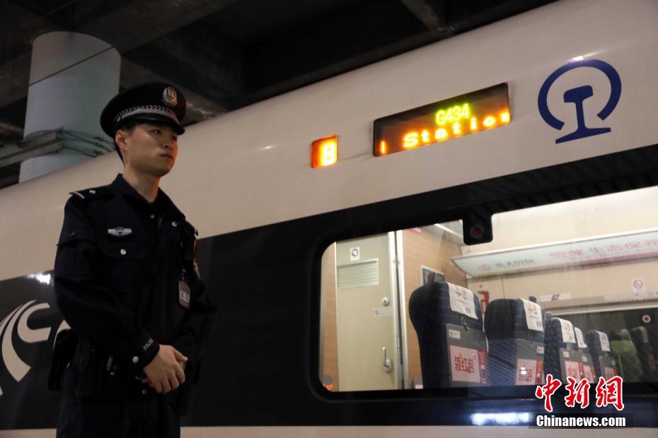 孔令揚是南寧鐵路公安處乘警支隊一名普通的乘警,今年28歲,家在山東濟南,父親曾是一名鐵路警察。平時,這名年輕的“90”后鐵警,不停地來往于南寧和濟南之間,與妻子和父母過著聚少離多的“雙城”生活,每月只有6個晚上在家。今年大年三十和初一正好是他值班,大年三十晚上20時40分,孔令揚值乘的G434次高鐵列車才到達濟南西站,孔令揚趕緊趕回家與父母團聚。2月16日(年初一)早上6時,他即從家里出發,趕到濟南西站,值乘上午8時15分由濟南西開往南寧東的G433次列車。孔令揚只能和父母相聚不到8個小時,沒來得及和妻子一起去岳母娘家省親。孔令揚只是南寧鐵路公安處大年夜值乘民警中的一員,今年大年夜和年初一,南寧鐵路公安處共有40多名民警堅守在崗位上。胡宏 攝 -
