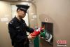 孔令揚在列車上幫助旅客檢查行李物品。胡宏 攝 -