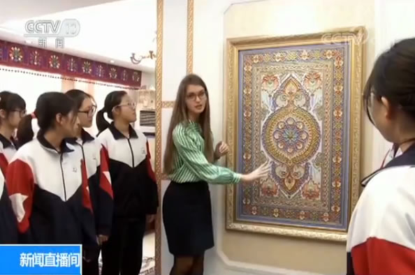位于北京的上合總部,每一個成員國都有自己的專屬展廳。4月25日,這里舉行了“開放日”,邀請中學生近距離感受上合組織的多樣文明。學生們領略不同國家的文化,欣賞烏茲別克斯坦的工藝品,演奏塔吉克斯坦的樂器,細微之間感悟互信、互利、平等、協商、尊重多樣文明、謀求共同發展的上海精神。