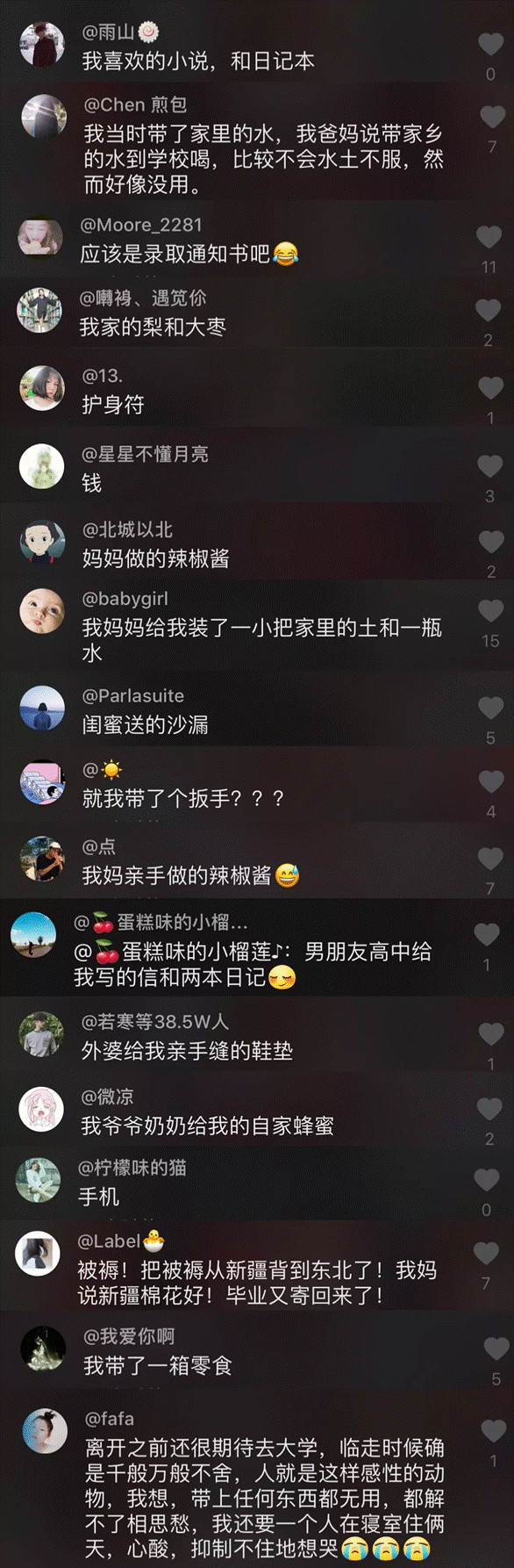 很多網友也在評論區里紛紛留言,分享自己當初入學時所帶的最特殊的物件。