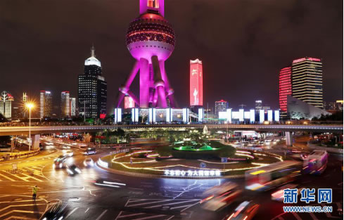 這是位于上海浦東陸家嘴的“珠聯(lián)璧合”主題花壇。圖片來源:新華社