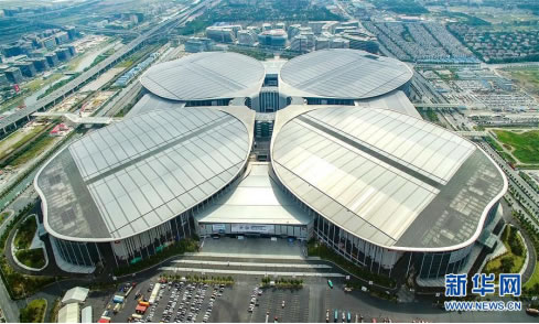 鳥瞰上海國(guó)家會(huì)展中心(國(guó)家會(huì)展中心供圖)。圖片來源:新華社