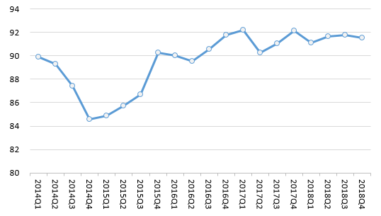 八是全國消費維權指數保持高位。2018年,全國消費維權指數平均為91.53,較去年同期增長了0.11個點,與五年平均值相比,增長了1.9個點。全國消費維權指數小幅增長,保持在高位,表明在我國經濟總體平穩、穩中有進的發展態勢下,消費環境持續向好。