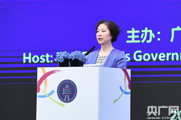 廣東省委宣傳部常務副部長、省電影局局長白潔女士在開幕式上致辭。(攝影:蘇韻樺)