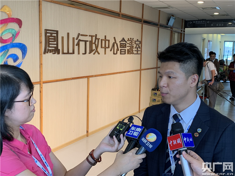 澳門中華青年商會會長譚鎧承接受媒體專訪。(央廣記者 張希達 攝)