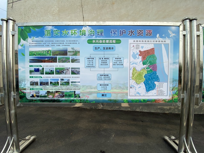 圖為長沙市望城區高塘嶺街道湘江村水環境治理宣傳板。新華網 汪亞攝