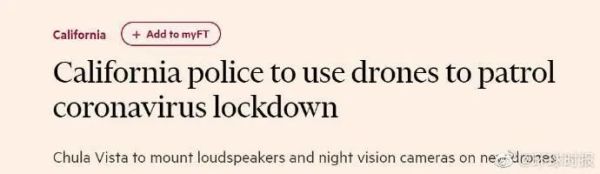 據(jù)英國《金融時報》20日報道,美國加州警察局計劃將使用配備揚(yáng)聲器和攝像頭的無人機(jī)進(jìn)行美國新冠疫情“居家隔離”時期的巡查防疫工作。