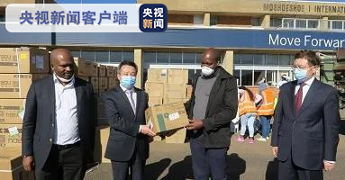 △中國企業(yè)援助萊索托醫(yī)療物資交接現(xiàn)場