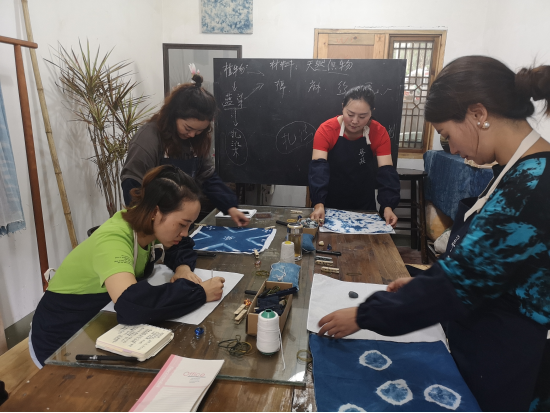 喬進雙梅代表(右四)對繡娘進行培訓。攝影/李里布