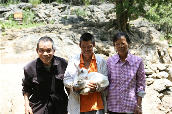 2014年,原來居住在新立村隴棒屯的黃忠軍從山里舉家搬遷到“廣新家園”。“進可攻,退可守。”由于是整屯搬遷,又建設了產業路,流轉原來村屯的土地后也可以發展產業。交通便利了,騎上摩托車,回老家也不過十幾分鐘。黃忠軍搬遷出來后,又回到隴棒屯搞起了養殖業,養了20頭牛、100多只羊。山里林草豐富,空氣好,養的牛羊在市場上很受歡迎。坐在自家門前,73歲的村民黃忠軍感嘆頗深,他說自己耳朵聽力不好,兒子身有殘疾,妻子沒有勞動力,過去,一家三口靠低保生活。2015年,黃忠軍決心扯掉貧困的帽子:“我最開始養了6只羊,我知道堅持就是勝利,到后來,我的羊越來越多,還買了牛。今年,我賣了幾頭牛羊,得了2萬多元,感謝黨和政府的關懷,現在我的生活是好了,可以和全國人民一道過上小康生活。”