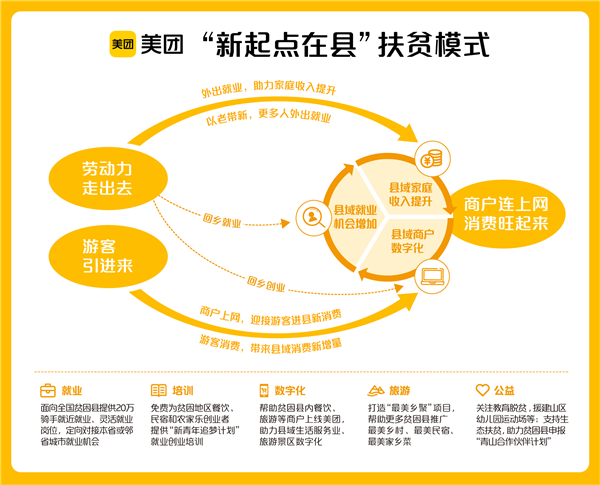 此外,美團正致力于完善當(dāng)?shù)氐纳罘⻊?wù)業(yè)新基建。美團“新起點在縣”項目還依托美團大學(xué)酒店學(xué)院的民宿服務(wù)、酒店管理、鄉(xiāng)村旅游、互聯(lián)網(wǎng)營銷等核心課程,讓餐飲民宿、農(nóng)家樂等相關(guān)從業(yè)者通過培訓(xùn)增強數(shù)字化運營能力,提升貧困地旅游產(chǎn)業(yè)附加值。縣內(nèi)數(shù)百家餐飲商家已通過參與數(shù)字化培訓(xùn)上線美團平臺,獲得線上推廣、流量扶持助力,為當(dāng)?shù)厣罘⻊?wù)業(yè)數(shù)字化升級,培育數(shù)字化新消費形態(tài),進而創(chuàng)造更多就業(yè)崗位注入活力。