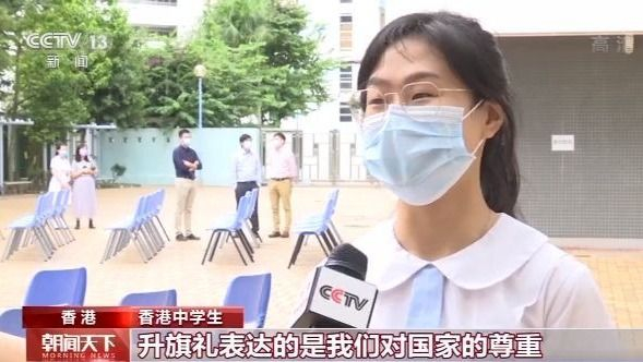 香港中學生:其實升旗禮對我們認識祖國是一個很好的方法,升旗禮表達的是我們對國家的尊重,我們看到升旗禮的時候,每個人都會很嚴肅很尊重。對我們香港的學生而言是一個機會,讓我們更了解國家。